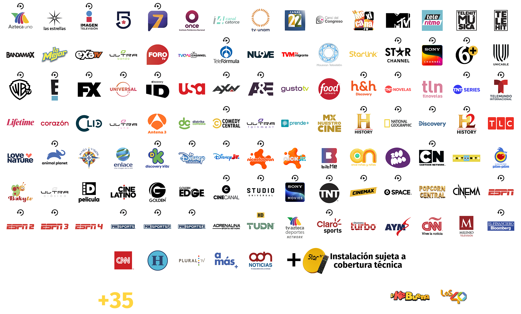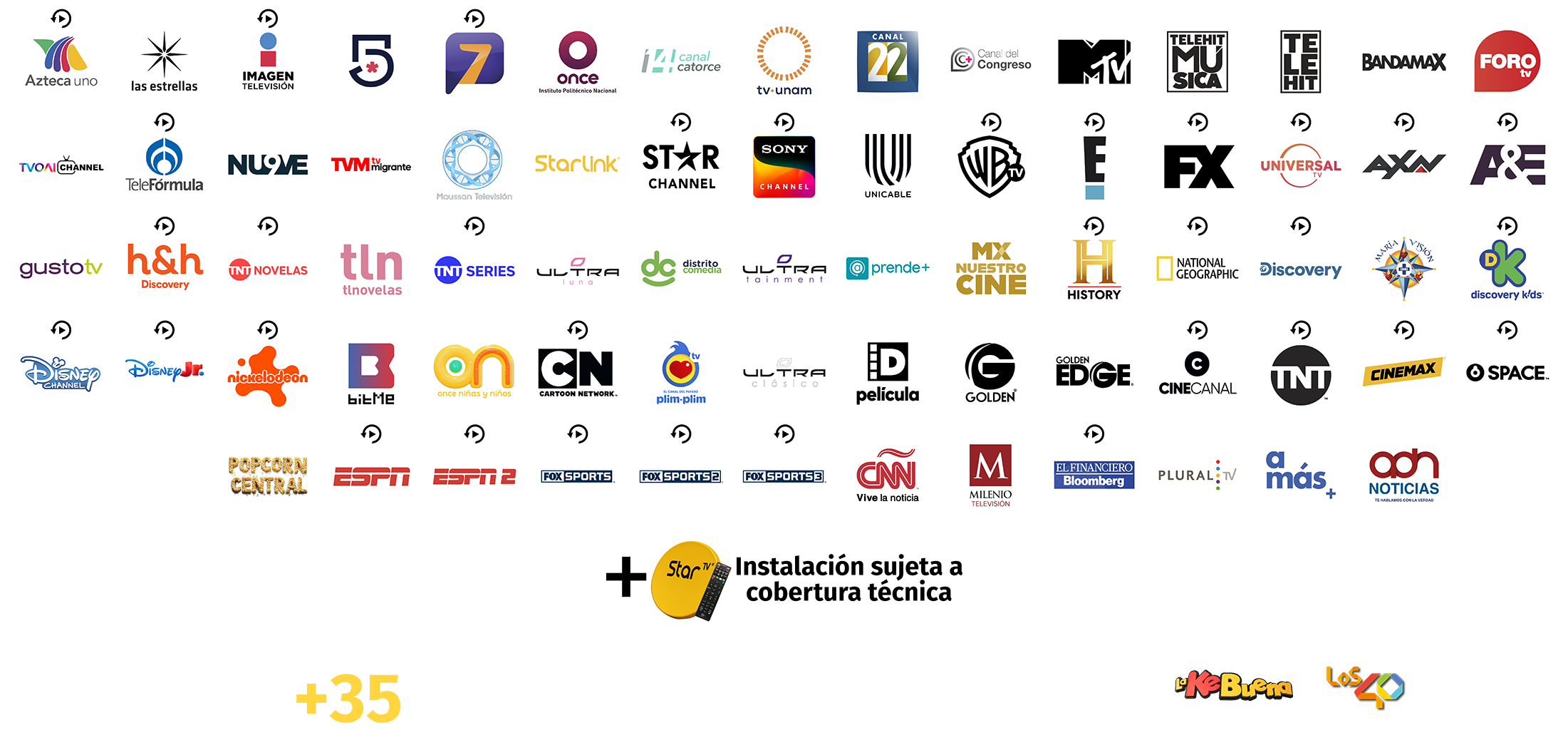 *La oferta anunciada corresponde a la contratación de la Promoción StarTV Stream con más canales y el servicio de televisión restringida satelital de StarTV. Otros beneficios, detalles de la promoción, términos y condiciones, pueden consultarse en el visor de tarifas de la Comisión Reguladora de Telecomunicaciones (CRT): https://tarifas.ift.org.mx/ift_visor/, ingresando el número de inscripción 2299304. Consulta el formato simplificado de información de dicha promoción aquí.
